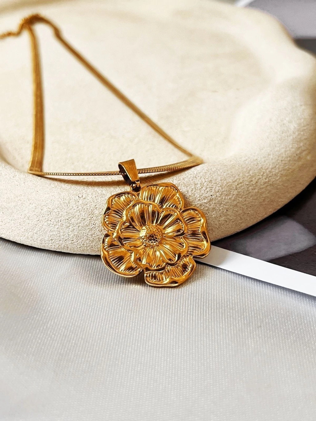 O destaque deste colar é o pingente floral esculpido com um acabamento texturizado, que valoriza qualquer look — do casual ao sofisticado. Sua corrente em estilo “flat snake” proporciona um caimento perfeito ao redor do pescoço.